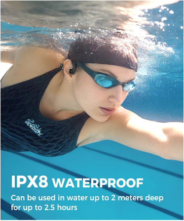 این هدفون مخصوص شنا با درجه ضد آب IPX8، کاملاً ضد آب و قابل غوطهوری هستند و میتوانند تا عمق ۲ متر و به مدت ۲.۵ ساعت در آب استفاده شوند و به دلیل اینکه میتوانند به حالت MP3 تغییر حالت دهند، بنابراین میتوانید بدون اتصال به دستگاه خارجی از موسیقی مورد علاقه خود لذت ببرید. این هدفونها، هدفونهای ورزشی عالی برای شنا، دویدن، دوچرخهسواری، تناسب اندام و سایر ورزشها هستند.