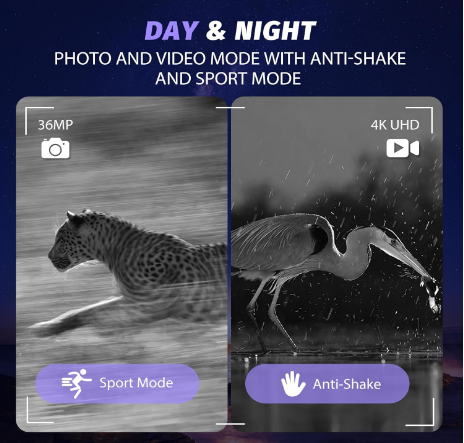 دوربین شکاری دوچشمی Night Vision (دید در شب) با کیفیت 4K (UHD) و 36MP شارژی با قابلیت فیلم برداری و زوم 5x به همراه کارت حافظه 32 گیگ (بار آمازون)