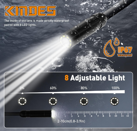 دوربین بورسکوپ مجهز به ۸ چراغ LED قابل تنظیم و فناوری لنز فرا افقی است که برد بصری ۲ تا ۱۰ سانتیمتر را برای تشخیص مناطق صعبالعبور فراهم میکند. این دوربین کیفیت تصویر عالی را برای تشخیص دقیق ارائه میدهد. کابل نیمهسخت ۵ متری (۱۶.۵ فوت) آن هم سفت و هم انعطافپذیر است تا نیازهای شما را بهتر برآورده کند.