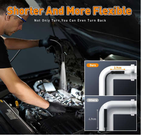 دوربین بورسکوپ با چراغ دارای صفحه نمایش IPS 4.3 اینچی و لنز با کیفیت بالا 1080P و پیکسل 3.5 سانتی متر است که امکان مشاهده تصاویر با کیفیت بالا را در زمان واقعی و بدون نیاز به اتصال به Wi-Fi یا دانلود هیچ نرم افزار فراهم می کند. استفاده از آن آسان است و بلافاصله پس از روشن شدن کار می کند. (توجه: بورسکوپ نمی تواند عکس یا فیلم بگیرد)