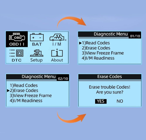 کدهای خطای تشخیصی را به سرعت بخوانید و پاک کنید، دادههای زنده و دادههای حافظه را بخوانید، فریم توقف را مشاهده کنید، آمادگی مانیتور I/M را مشاهده کنید و اطلاعات خودرو را جمعآوری کنید.