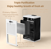 رطوبتگیر / خشککن لباس / تصفیه یون منفی رطوبتگیر چندمنظوره سه در یک، مجهز به فیلتر PET با چگالی بالا، کربن فعال دو لایه، فیلتراسیون مؤثر گرد و غبار، دود سیگار، باکتریها و سایر مواد مضر موجود در هوا.