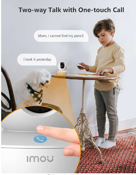 هنگامی که کودک شما در خانه تنها است، فقط کافی است "علامت تلفن" را بر روی دوربین داخلی فشار دهید تا با اعضای خانواده تماس برقرار شود.