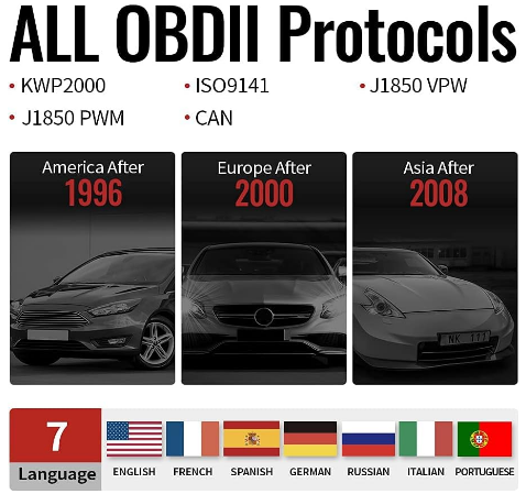 ابزارهای عیب یابی mucar OBD-II سازگار با اکثر خودروهای آمریکایی مدل 1996 به بعد، خودروهای اروپایی مدل 2000 به بعد و همچنین خودروهای ساخت آسیا است و تا 8 زبان خودرو را پشتیبانی می کند: انگلیسی، فرانسوی، آلمانی، روسی، ایتالیایی، پرتغالی . از تمامی پروتکل های OBDII (ISO914141) پشتیبانی می کند. (OBD-II protocols: KWP2000, ISO9141, J1850 VPW, J1850 PWM and CAN).