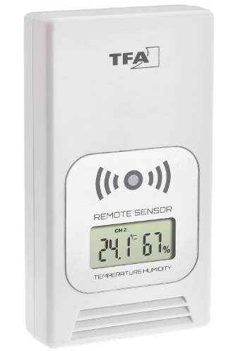 اطلاعات رطوبت و دمای بیرون از طریق یک فرستنده رادیویی جداگانه که در فضای بیرون نصب می شود، تعیین می شود. برد این فرستنده در حدود 60 متر است و به دستگاه داخل خانه به صورت بی سیم متصل می شود. (علاوه بر این دو فرستنده اضافی بیرونی دیگر هم قابل نصب و اتصال به دستگاه داخلی می باشند.)