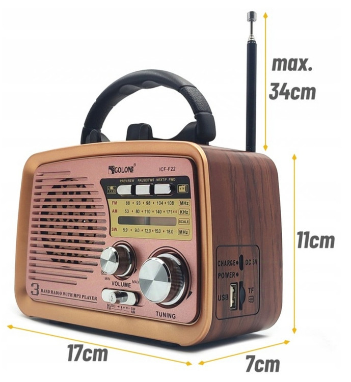 این دستگاه با کیفیت بالا و مجهز به ورودی USB داخلی برای گوش دادن به آهنگ در خانه و سفر ایده آل است. رادیو مجهز به بلندگوی قوی و آنتن هوشمند است که دریافت سیگنال خوب را تضمین می کند.