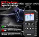 این دستگاه به 3 کلید دسترسی آسان مجهز شده است. گزینه اول DTC که کدهای ذخیره شده در ابزار اسکن را نمایش میدهد. گزینه دوم VIN که شماره شناسایی خودرو را نمایش میدهد و گزینه سوم I/M readiness که جهت بررسی سریع خودرو به لحاظ انتشار گاز و تایید چرخه رانندگی استفاده میشود.