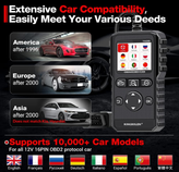 پشتیبانی از 9 پروتکل ISO15765-4 (CAN), ISO14230-4 (KWP2000), ISO9141-2, J1850 VPW, J1850 PWM) که با اکثر خودروهای آمریکایی ساخته شده بعد از سال 1996 و خودروهای اروپایی بعد از سال 2000 و آسیایی سازگار است.همچنین از 9 زبان مانند انگلیسی، فرانسوی، روسی، اسپانیایی، آلمانی، ایتالیایی، پرتغالی، لهستانی و چینی سنتی پشتیبانی میکند.
